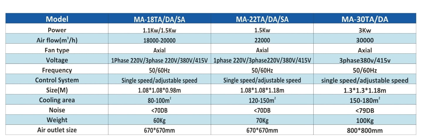 Evaporative cooler industrial models are designed with high capacity and durable construction. An axial evaporative air cooler maintains continuous airflow and stable temperature control in industrial units. It uses heavy‑duty components that can easily handle dust, heat, and long operating hours.